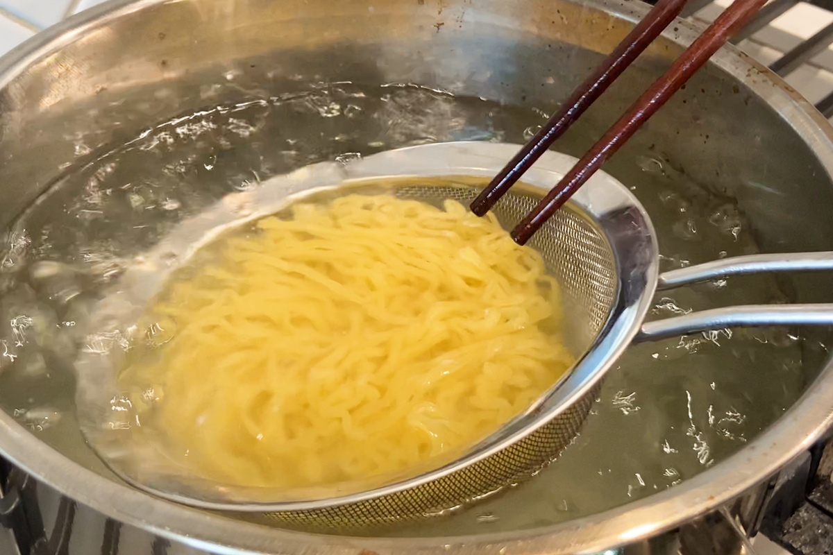 • Bring a pot of water to a boil and add the fresh ramen noodles. Cook just until they’re al dente, then drain and set aside. Fresh noodles usually take around 90 seconds, but adjust based on the type you’re using.