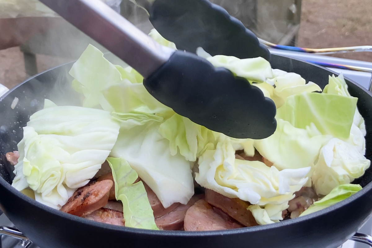 • Mix camping sausage & cabbage stir-fry with instant noodles or heat-and-serve rice packs for a quick, filling dinner.