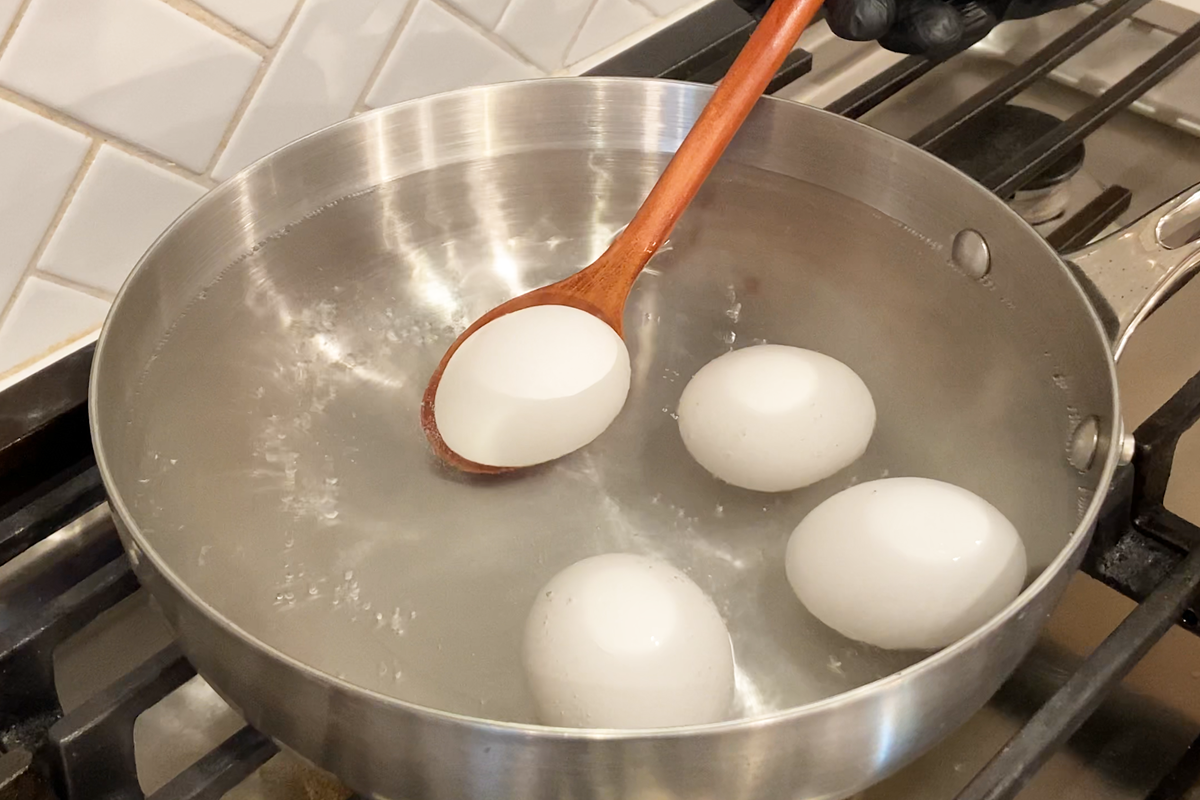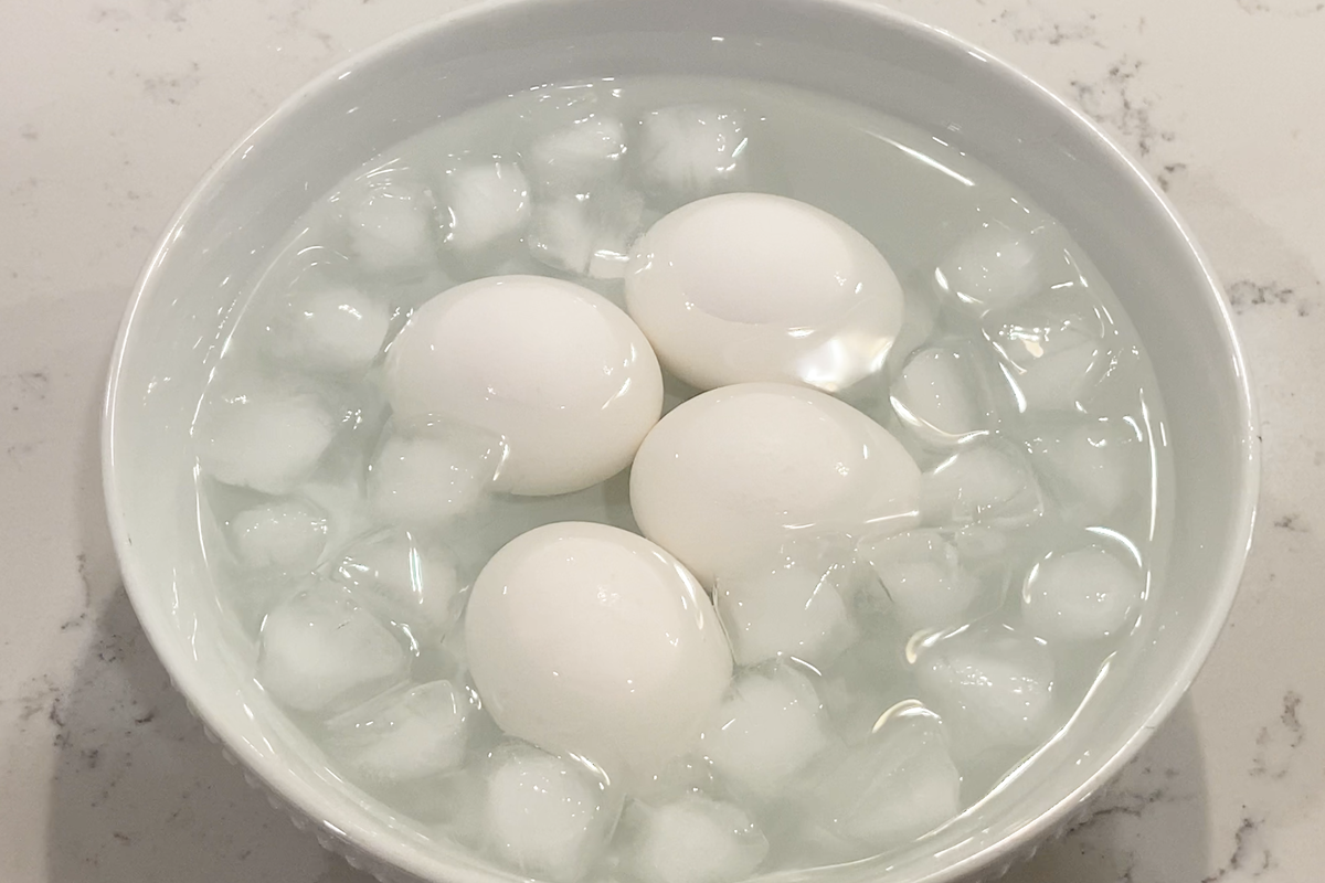 • Cool the Eggs: Immediately transfer the eggs to an ice bath (or a bowl of very cold water). Let them sit for 5–10 minutes to stop the cooking process.